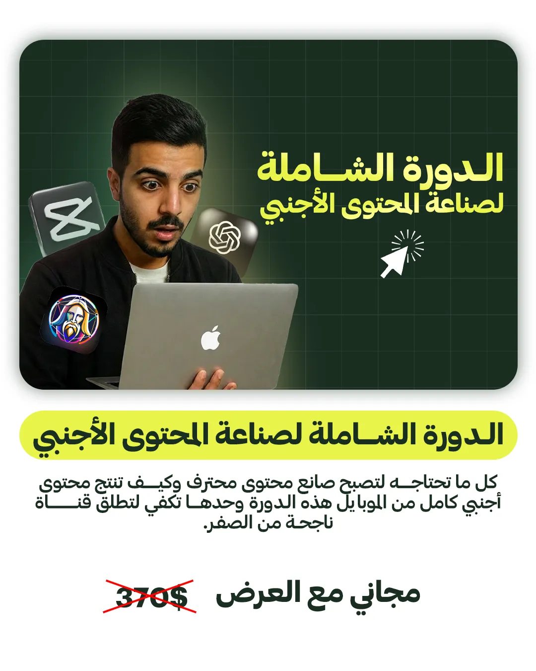 كل الأدوات اللي رح تستخدمها مجانية 100%، وموضحة داخل الدورة.